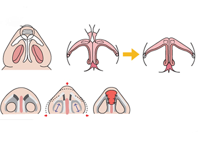 就是在一侧鼻孔内的顶部做一弧形切口,这种切口操作不便,易污染导致感染。